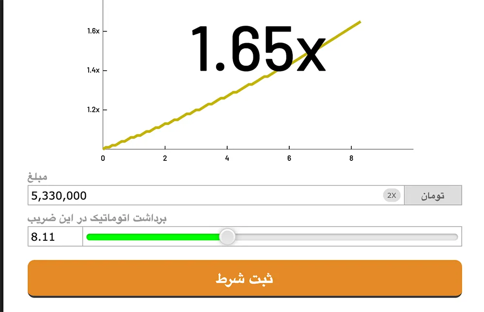 ضریب اتوماتیک این امکان را میدهد که شما از قبل عدد ضریب دلخواه خود را وارد کنید تا سیستم بهطور خودکار در آن عدد برداشت کند. این گزینه برای کسانی مفید است که میخواهند از هیجان زیاد جلوگیری کنند و تصمیمگیری را به الگوریتم واگذار کنند.